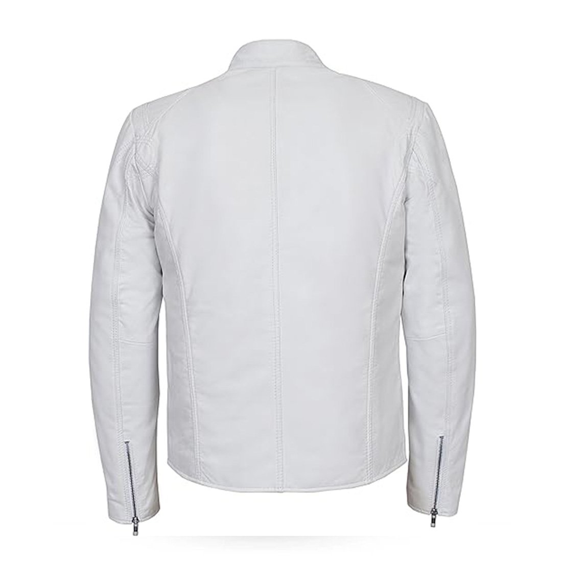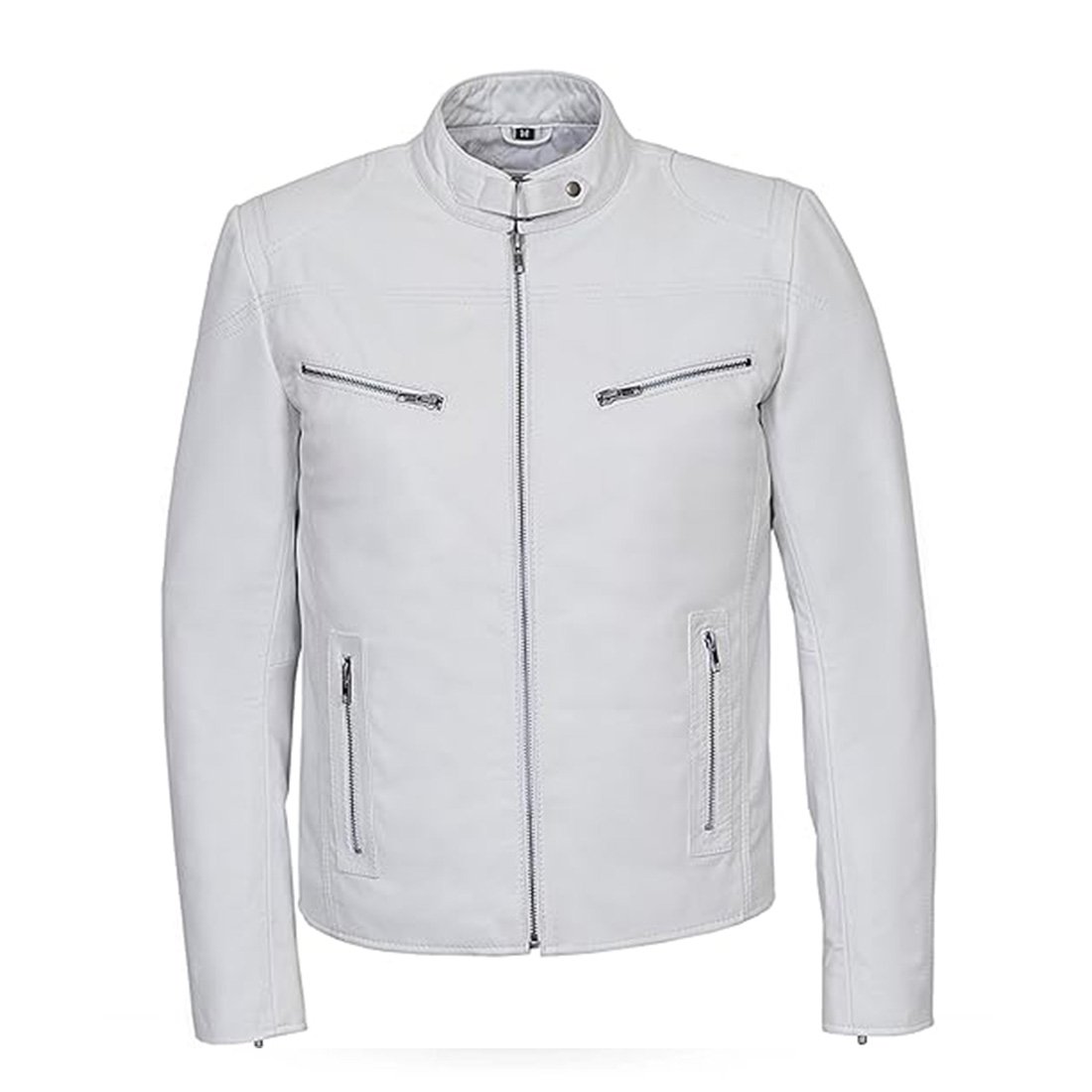 Men’s White Washed Biker Style Motorcycle Real Leather Jacket